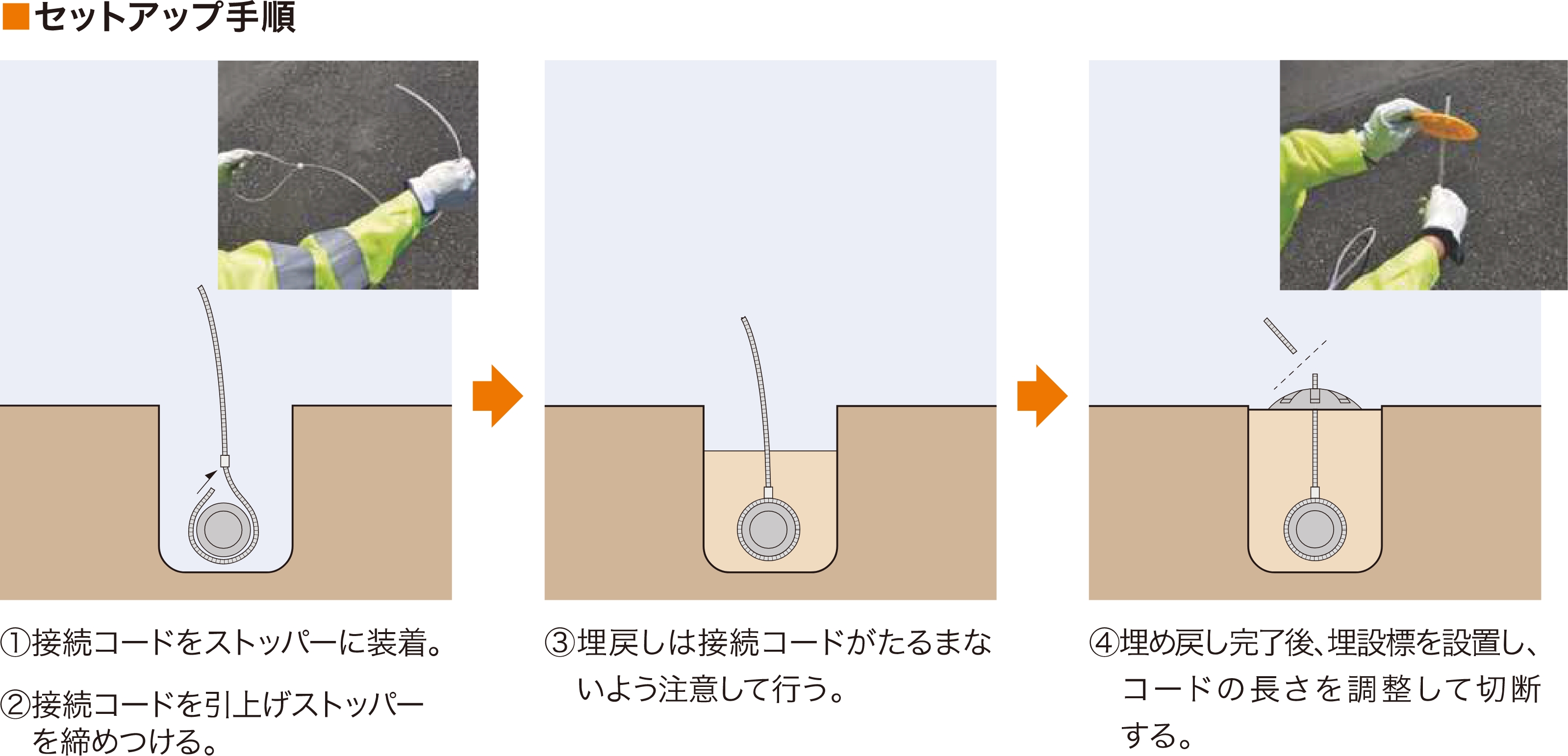 管路を直結し埋設標表面の方位表示孔で正確な位置方向がすぐ分かる。