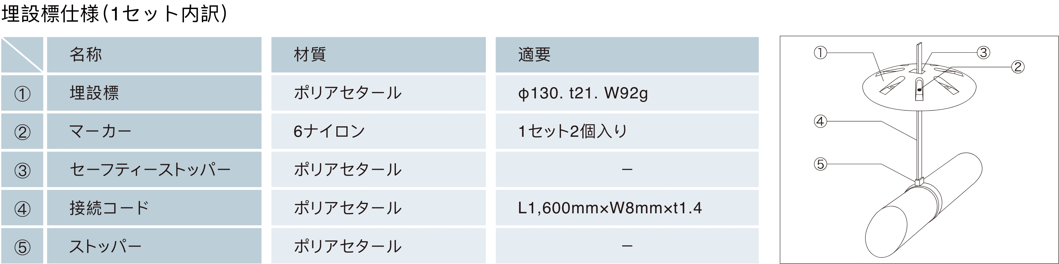 長期埋設しても、色あせや変形し難い材質。