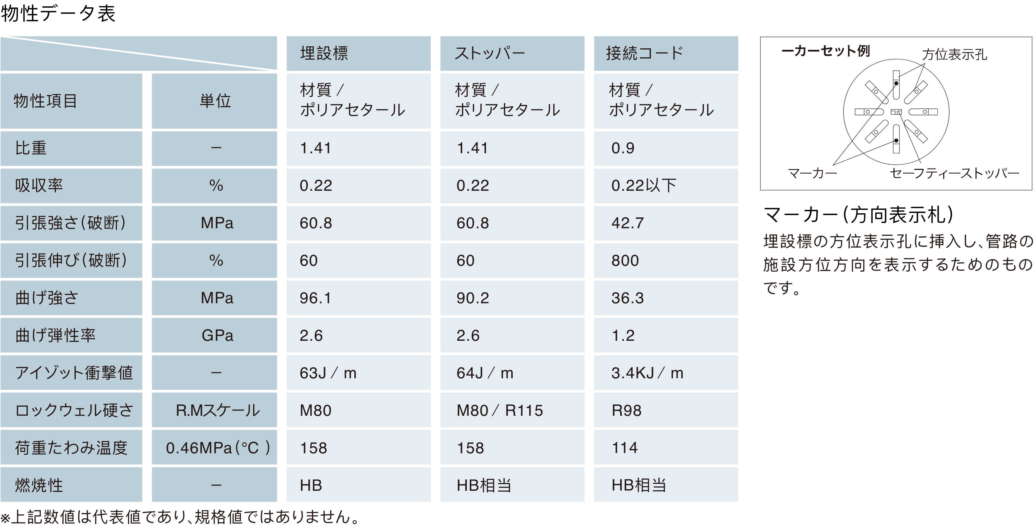 長期埋設しても、色あせや変形し難い材質。